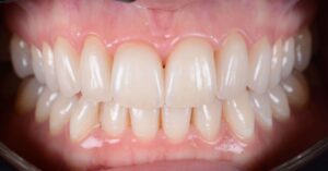 Bei diesem Patienten wurden die oberen Zähne mit handgefertigten Veneers veredelt, um ein